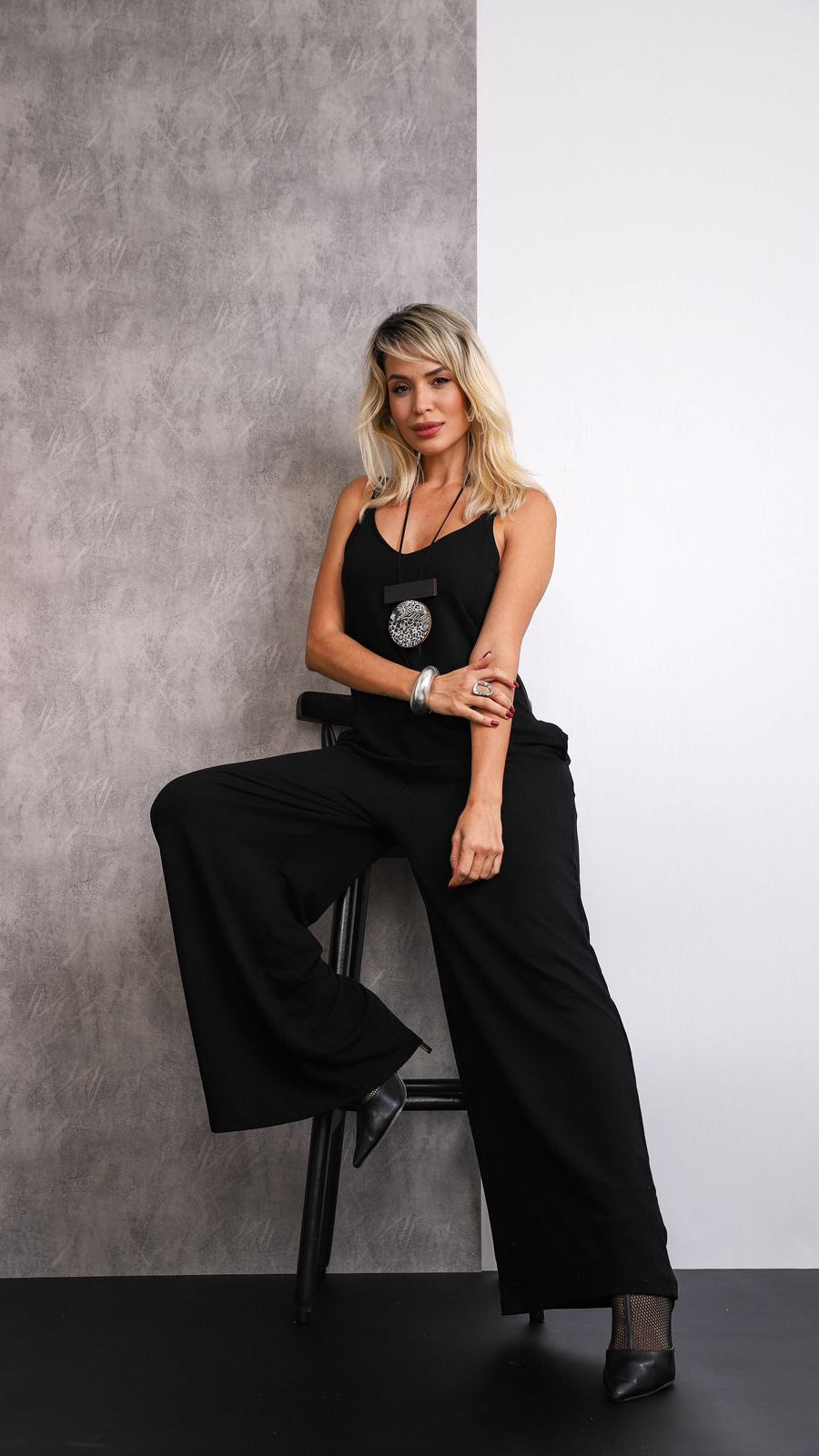 O Macacão Siena é a peça perfeita para um visual moderno, minimalista e super elegante. Com alcinhas finas e decote suave, ele traz leveza ao colo, enquanto a calça de pernas amplas garante movimento e alonga a silhueta. O caimento fluido e confortável permite usar o dia todo, seja em ocasiões casuais ou mais arrumadas.