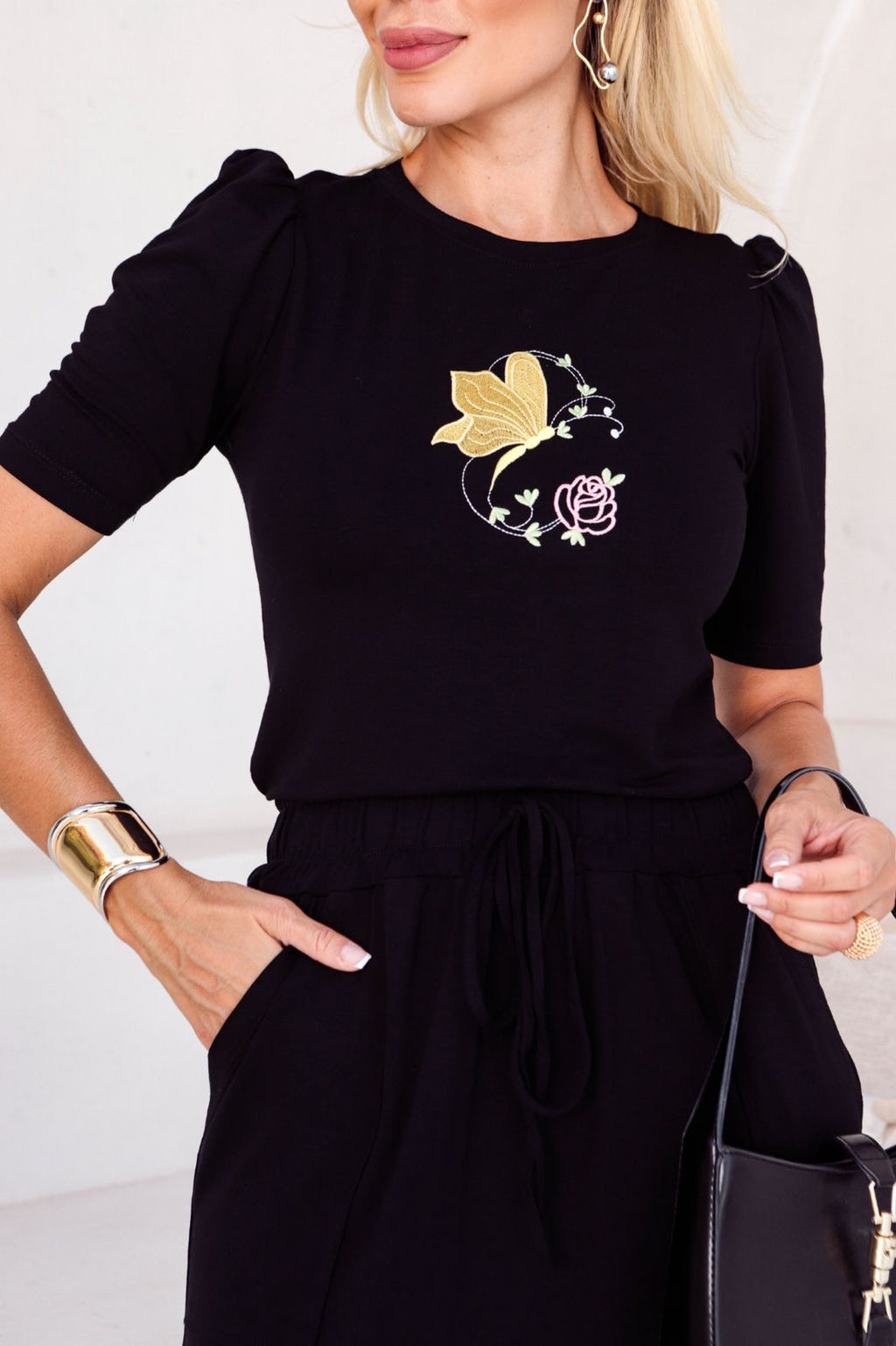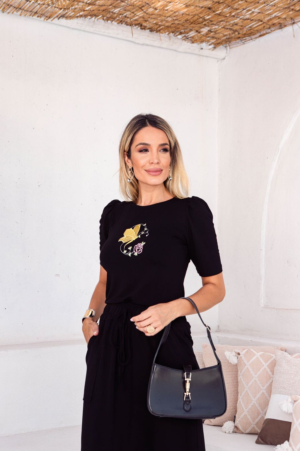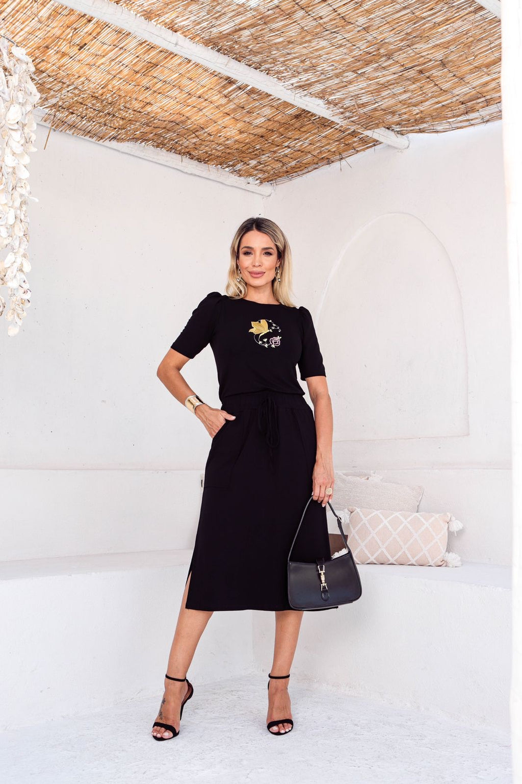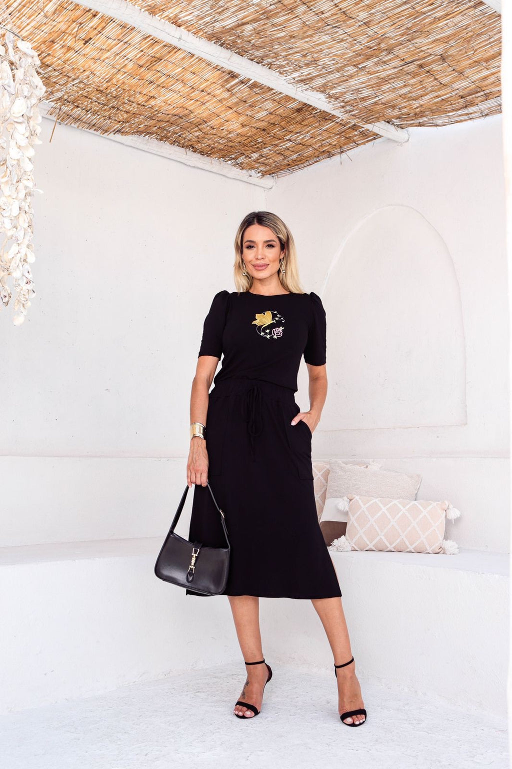 Conjunto de saia com manguinha bufante e bordado no Moletinho